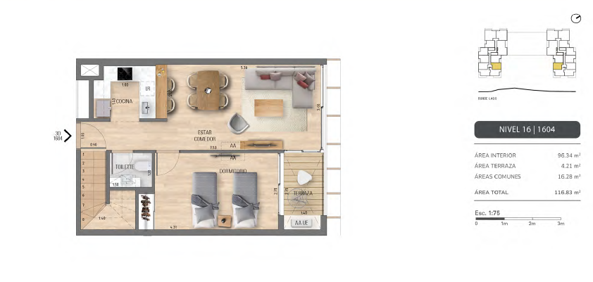 Contará con amenities de nivel: Barbacoas con living, Cowork, Gimnasio, Playroom, Piscina interior y exterior climatizada, Solárium, Seguridad, Laundry, Estación Eléctrica, Bicicletero, Muelle y vistas panorámicas y Kayaks.