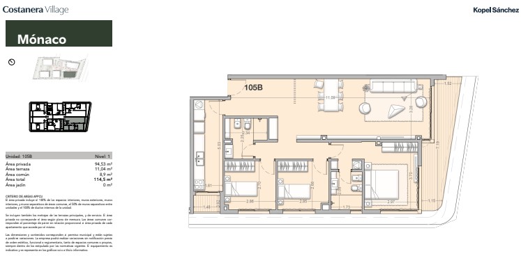 La unidad se ubica en el primer piso de la Torre B - Mónaco al frente con orientación Sur. Cuenta con living comedor con cocina definida con terraza lavadero.