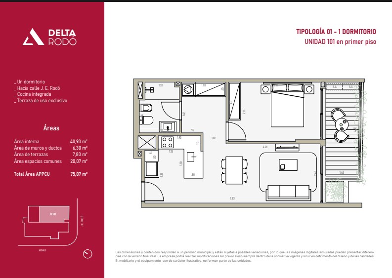 Apartamento de 1 dormitorio en Delta Rodó, ubicado en el corazón de Cordón - José Enrique Rodó y Minas - A pasos de la variada oferta gastronómica, de universidades y de teatros.