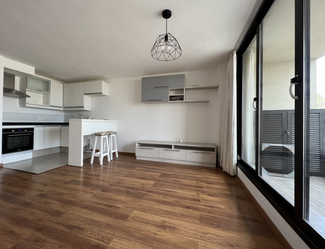 Cocina semi integrada con barra desayunador, la misma está equipada con horno empotrado, anafe a inducción y campana extractora.