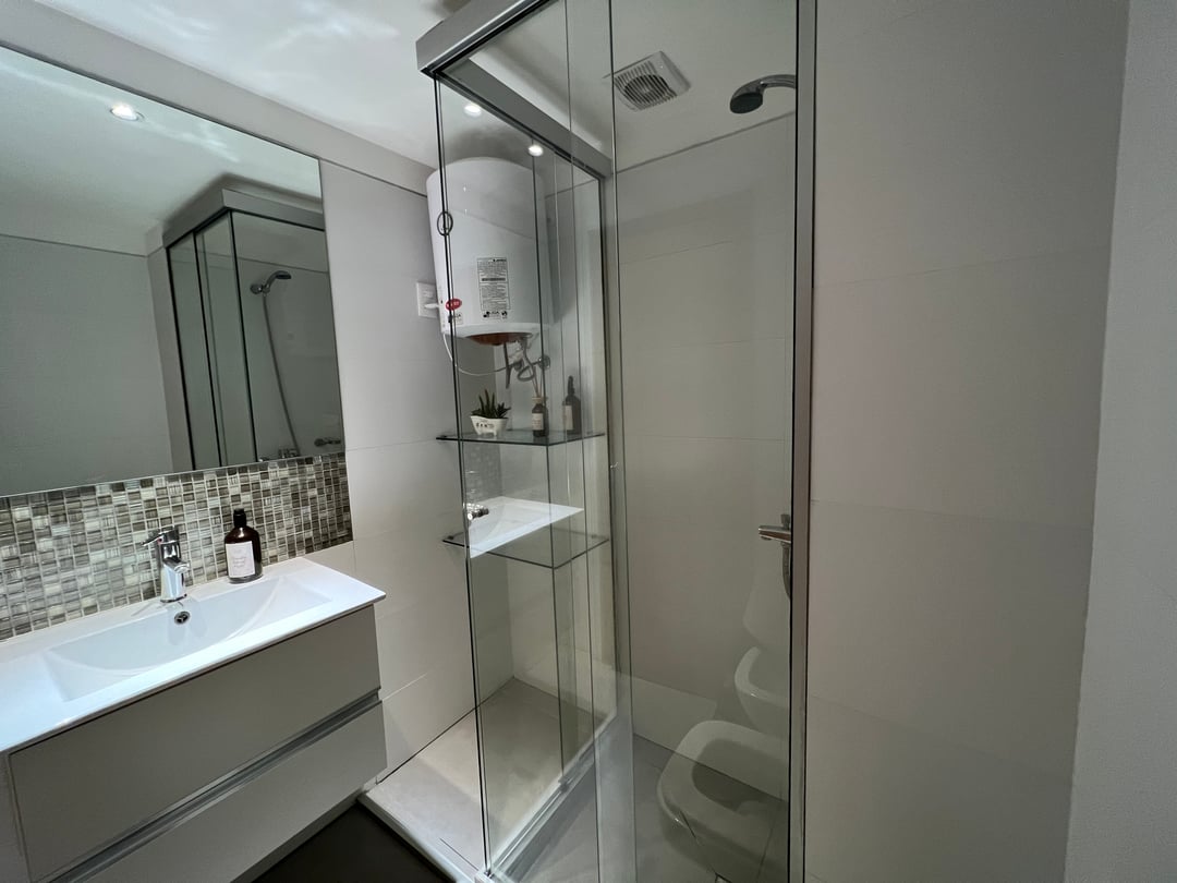 El apartamento cuenta, cómodo living comedor al frente con aéreos y rack y con gran balcón que además cuenta con un box para lavarropa (incluido) y aire acondicionado. Está en excelentes condiciones.