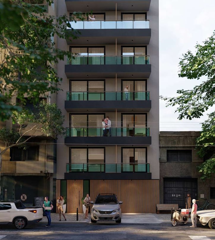 Es un edificio de concepción contemporánea con 18 unidades destinadas a vivienda y 9 garajes, moderno, funcional y con ambientes luminosos; con terminaciones de calidad desde la fachada a las áreas propias y de uso común.