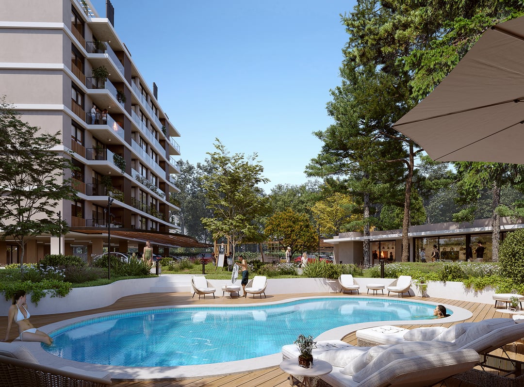 Amenities: Cowork, parking para bicicletas, gimnasio, parque verde y paisajismo, piscina, sum con parrilleros, laundry, solárium y juegos para niños