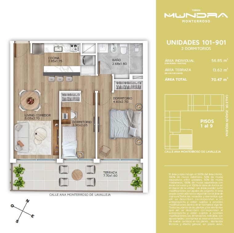 Venta de apartamento de 2 dormitorios en Torres Mundra, es un proyecto de dos torres ubicado en pleno Cordón, Ana M. de Lavalleja y J. Requena, una zona de gran crecimiento, a pasos de las Universidades, del Shopping Tres Cruces y de toda la movida gastronómica. La Torre Monterroso contará con 39 apartamentos y la Torre Requena con 31 apartamentos movida gastronómica.