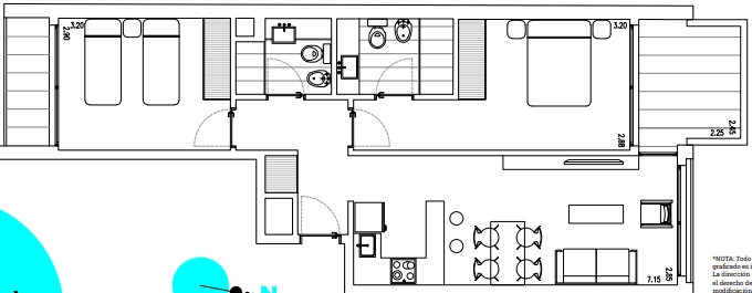 Dos dormitorios, el principal en suite. Ambos cuentan con balcón. 2 baños.
