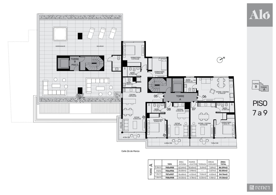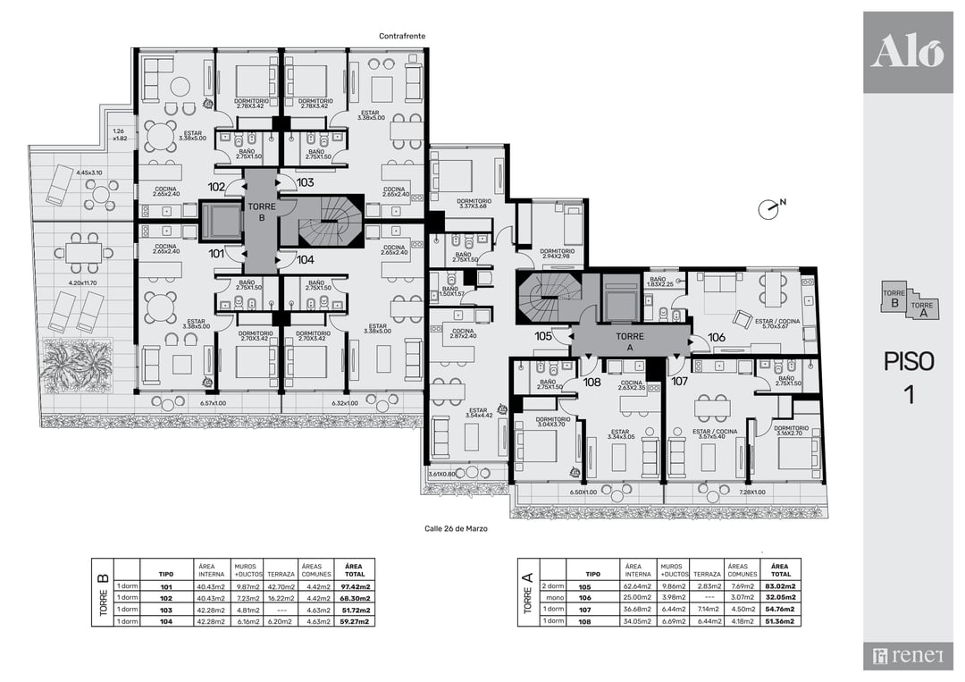 Unidad de 1 dormitorio en la segunda torre, con orientación oeste.