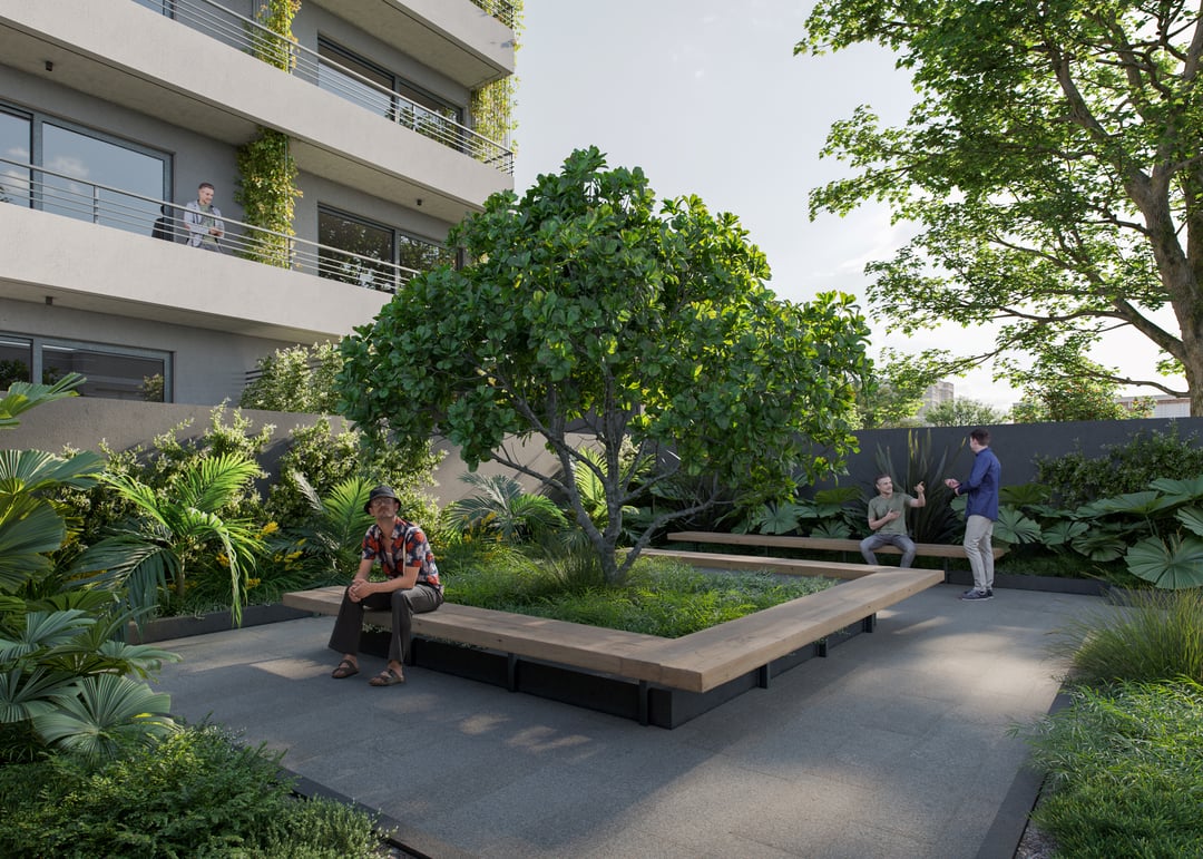 El proyecto se desarrolla en dos torres separadas entre sí por amplios patios privados y cuenta con generosos espacios comunes diseñados para disfrutar y como punto de encuentro para sus usuarios.