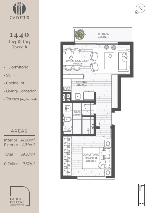 Apartamento de 1 dormitorio en venta en Calyptus 1440, ubicado en Ing. Luis P. Ponce y Palmar, en el corazón de Montevideo, a tres cuadras de Bv. Artigas en un barrio conectado al circuito educativo y rodeado de todos los servicios.