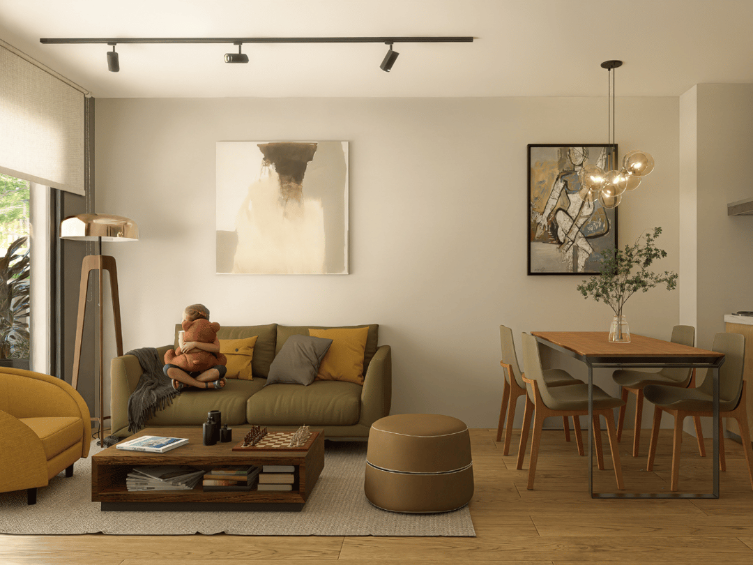 La unidad se ubica en el primer piso al contrafrente con orientación Oeste. Living comedor con cocina integrada mediante barra. Salida al balcón.