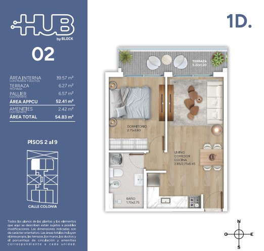 Venta de apartamento de 1 dormitorio en HUB by Block, ubicado en el barrio de Cordón - Colonia y M.C Martinez - a pasos de 18 de Julio y Tres Cruces.