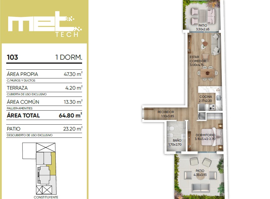 Apartamento de 1 dormitorio a la venta en Met Tech, ubicado en Constituyente entre Magallanes y Gaboto, sobre la calle principal del barrio Cordón.