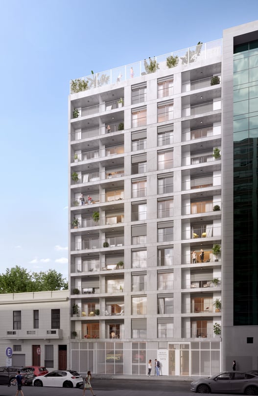 Se conforma de 44 unidades de construcción tradicional, 33 de 1 dormitorio y 11 de 2 dormitorios, todas con terrazas o patios exclusivos, con orientación este - oeste garantizando la iluminación natural y vistas despejadas al entorno. Además de 2 plantas de estacionamiento.