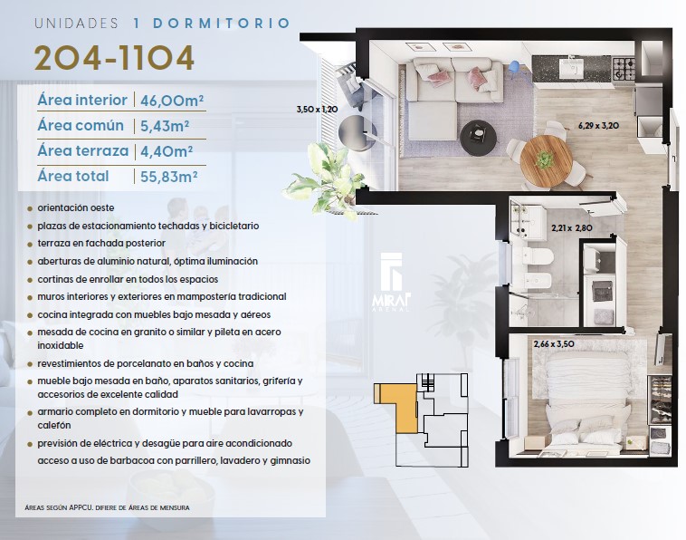 Apartamento en venta de 1 dormitorio en Miraf Arenal, ubicado en Cordón un punto excelente Arenal Grande casi Brandsen, a pasos de grandes avenidas como 18 de Julio y Rivera. Zona en crecimiento, de fácil acceso y conectividad.