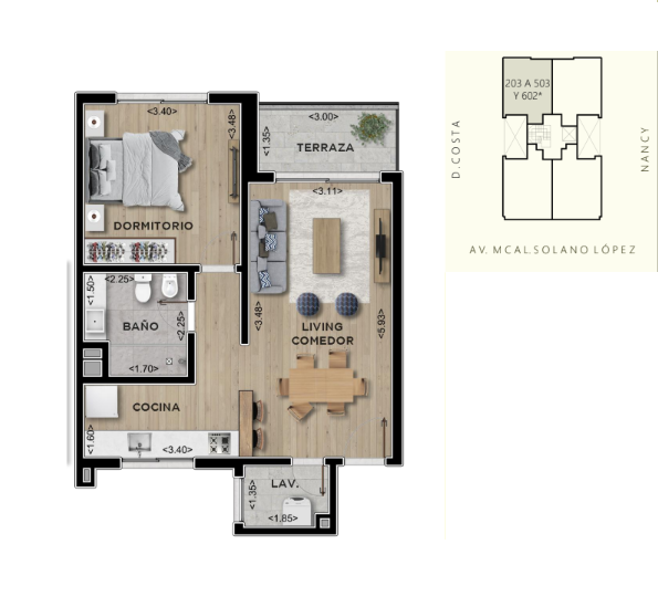 ¡Oportunidad! Apartamento a estrenar de 1 dormitorio en el corazón del Buceo, sobre Av. Mariscal Francisco Solano López, entre Nancy y Dalmiro Costa. Una zona estratégica, a solo tres cuadras de Av. Rivera y a siete cuadras de la rambla, con excelente conectividad y todos los servicios a mano.