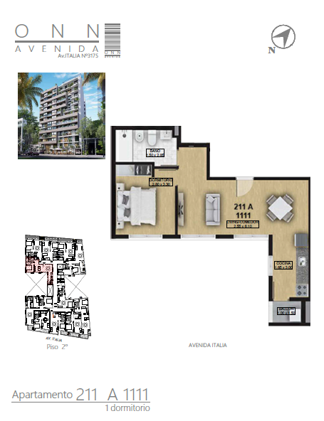 Apartamento de 1 dormitorio en venta en ONN Avenida, sobre Av. Italia y Luis A. de Herrera, una de las zonas con mayor crecimiento de la ciudad. Rodeado de servicios, centros de salud, comercios y con excelente conexión hacia todos los puntos de Montevideo y el Este.