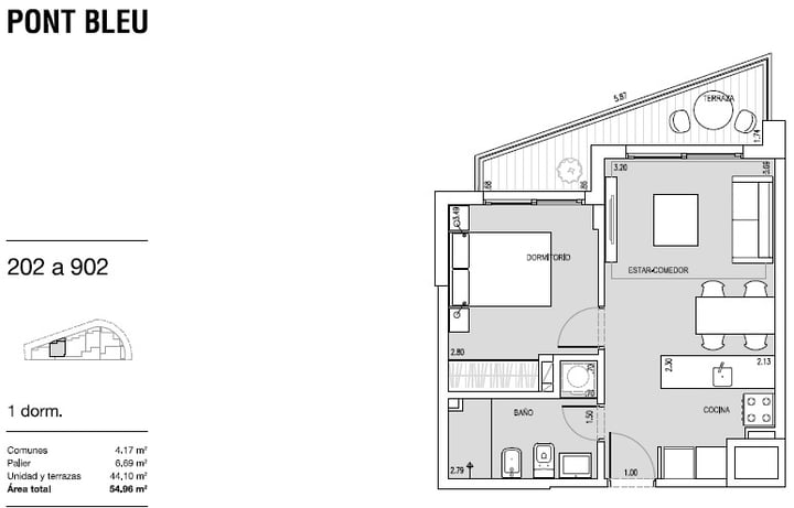 Cómodo dormitorio. Salida a terraza desde el living y el dormitorio.