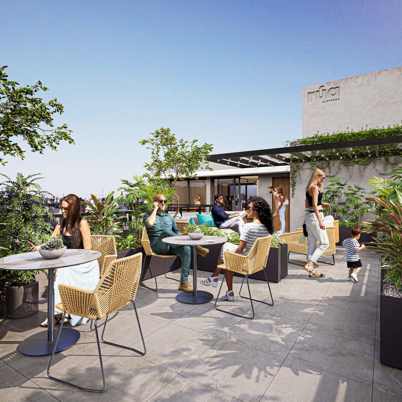 Amenities: barbacoa equipada con amplias terrazas, tender y laundry en el piso 11. Además, estacionamiento para 16 autos con portón y cortina metálica, sistema de cámaras de seguridad, bicicletero.