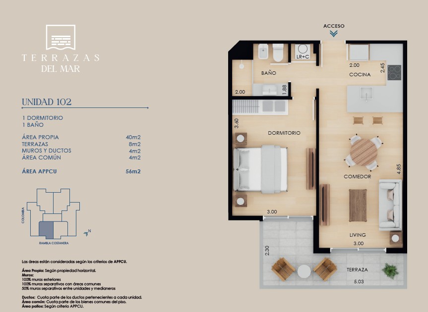 Venta de apartamento de 1 dormitorio en Terrazas del Mar, ubicado en la Rambla Costanera y Colombes, perfecta armonía entre el mar y la naturaleza, sobre la rambla a minutos de la ciudad.