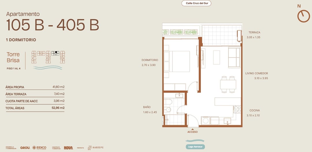 Venta de apartamento de 1 dormitorio en Torre Brisa en Grou Lagún, es un desarrollo residencial de vanguardia con entrega prevista para febrero de 2028. Ubicado en el Distrito Carrasco Prat, a orillas del Lago Aerosur, este proyecto se posiciona como una de las zonas con mayor proyección al este de Montevideo, destinado a ser uno de los lugares más codiciados para vivir e invertir.