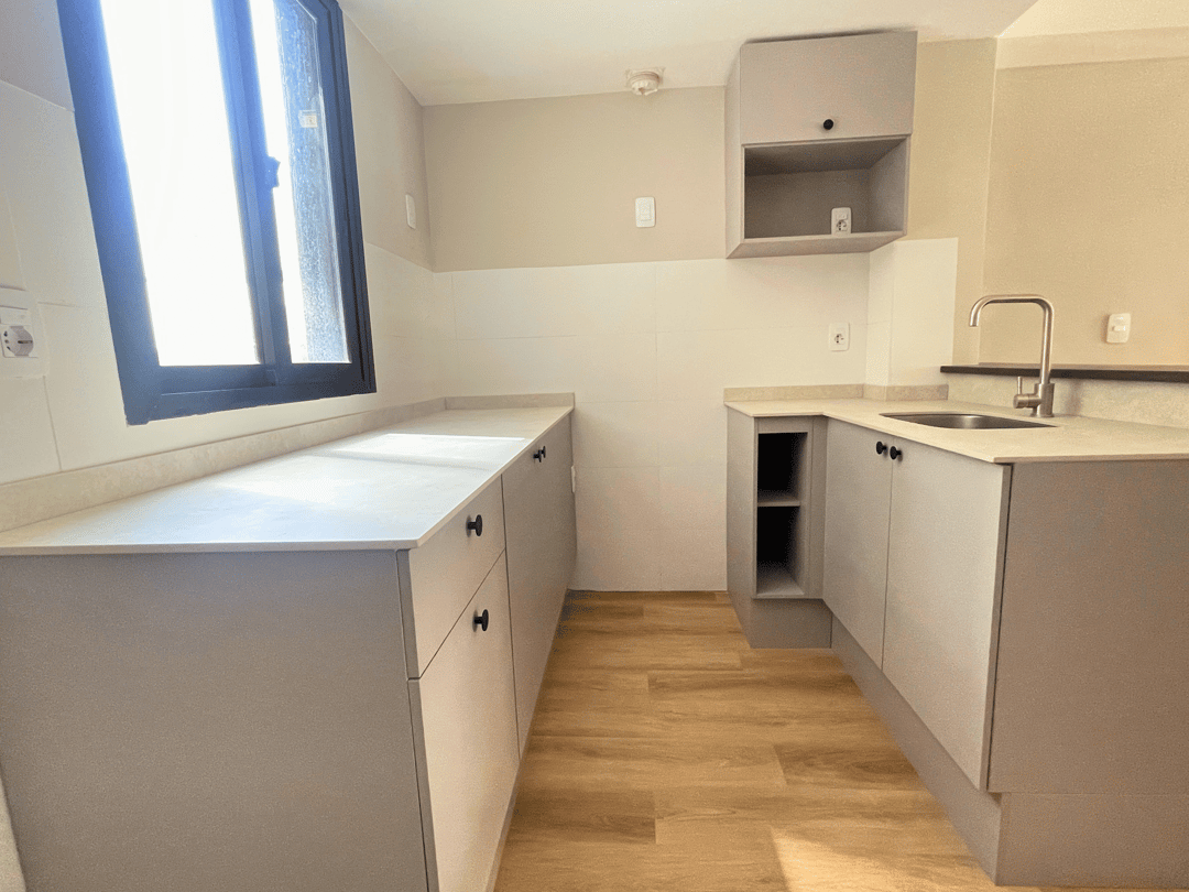 2do piso todo al contrafrente con orientación Este, living comedor con cocina semi integrada al mismo, 1 dormitorio y 1 baño.