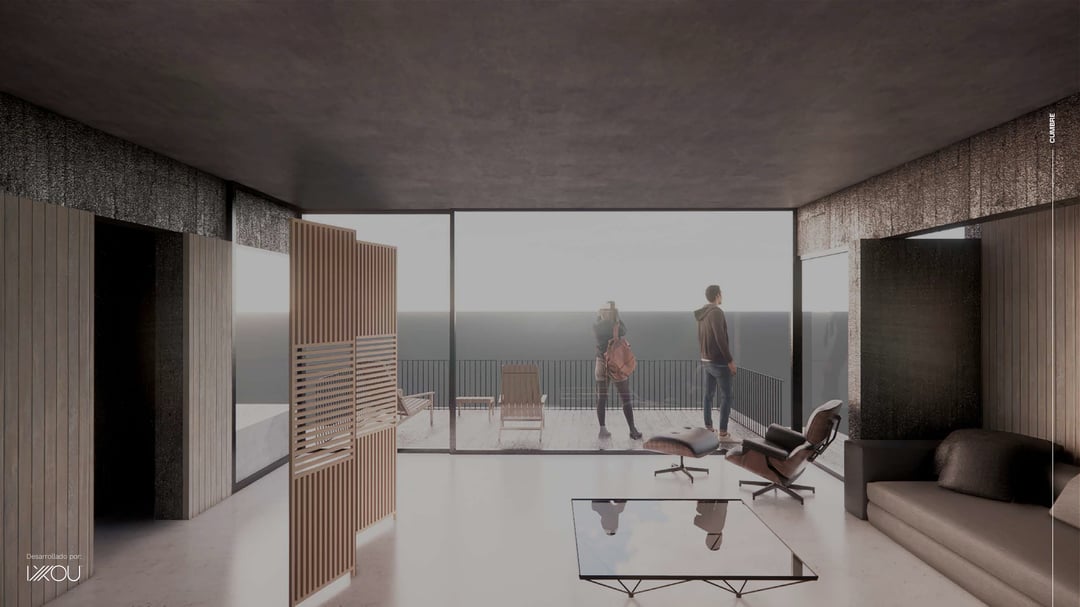 El edificio se diseñó con una volumetría innovadora, creando un tragaluz central que conecta y equilibra las áreas privadas y públicas de cada apartamento. Este detalle arquitectónico no solo realza la estética del espacio sino que también maximiza la entrada de luz natural, creando un ambiente más luminoso y acogedor en todo el hogar.