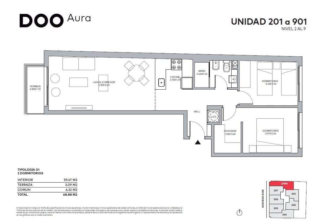 Venta de apartamento de 2 dormitorios de Doo Aura, ubicada en Acevedo Díaz entre Rodó y Rivera - Cordón Sur la zona de mayor crecimiento de la ciudad y gran potencial. En plena zona universitaria, a pocas cuadras de las facultades de Derecho, Economía, Arquitectura y Comunicación.