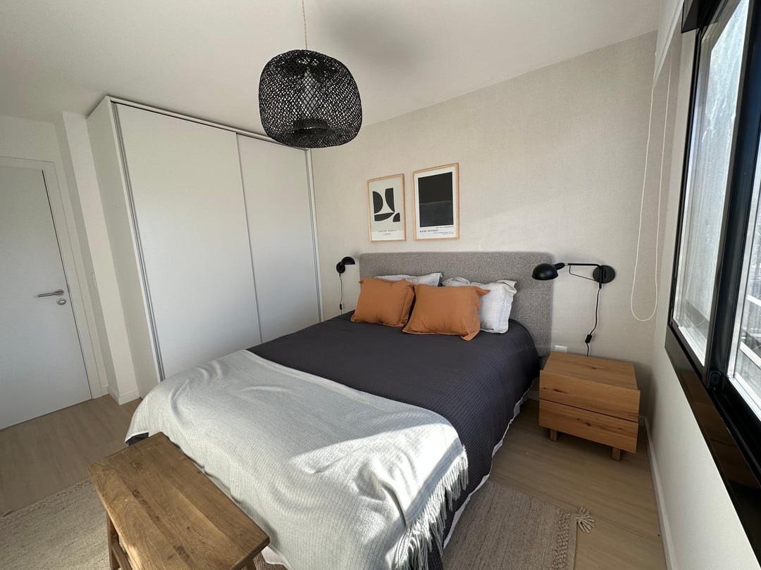 Apartamento en el piso 19, al contrafrente lateral con orientación Noreste, presenta una cómoda planta que incluye una terraza en el living y en uno de los dormitorios, así como una terraza lavadero en la cocina. El living cuenta con doble ventana y aire acondicionado, mientras que los dormitorios están equipados con placard, ventanas con DVH y persiana.