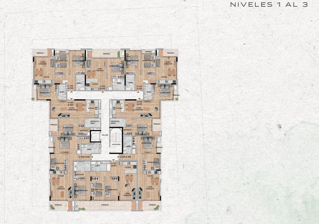 En Terrazas de la Costa encontrarás apartamentos de 1, 2 y 3 dormitorios, destacándose algunas unidades que ofrecen un amplio jardín. En la planta baja y subsuelo se dispondrá de cocheras individuales y dobles compartidas. Todas las cocinas tendrán incluidas e instaladas, campana extractora de acero inoxidable con turbina de extracción, horno eléctrico de empotrar y anafe de inducción sobre mesada.