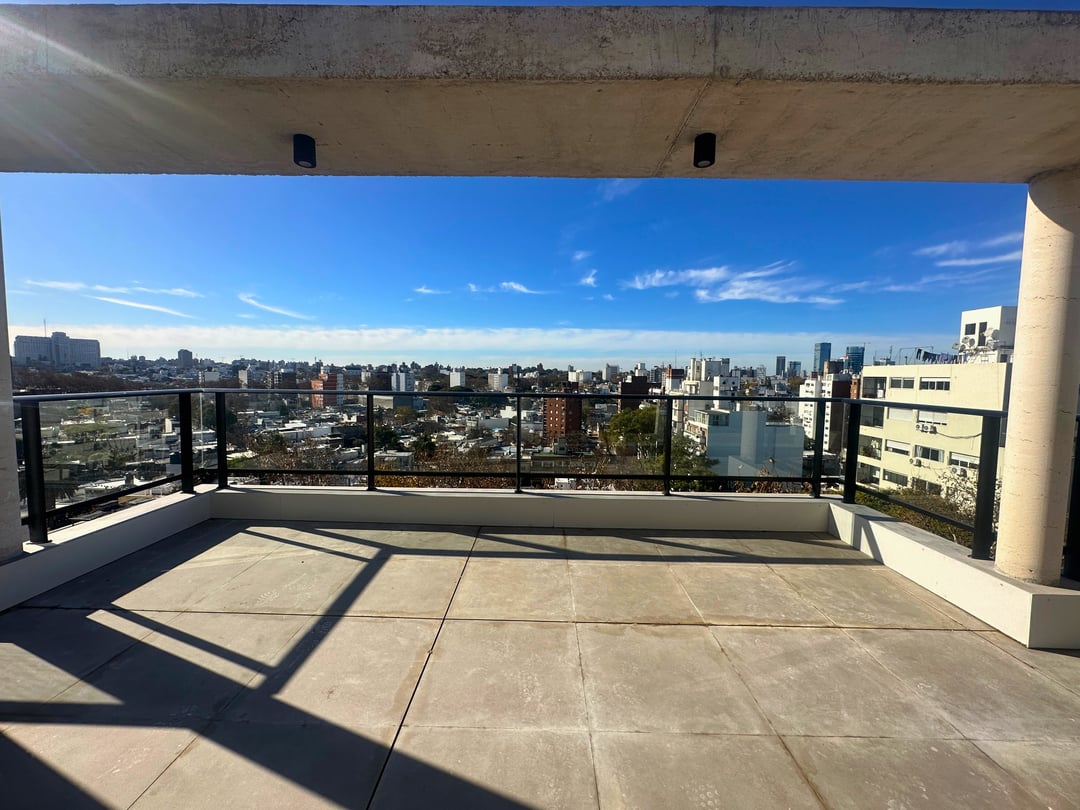 Penthouse en Piso 10 al frente con gran terraza, cocina integrada, 2 dormitorios uno al frente y otro al contrafrente con baño en suite.
