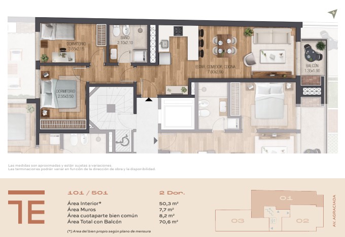 Cada unidad está diseñada para maximizar confort y funcionalidad, con parrilleros privados para comidas al aire libre y una orientación que optimiza la luz natural.
