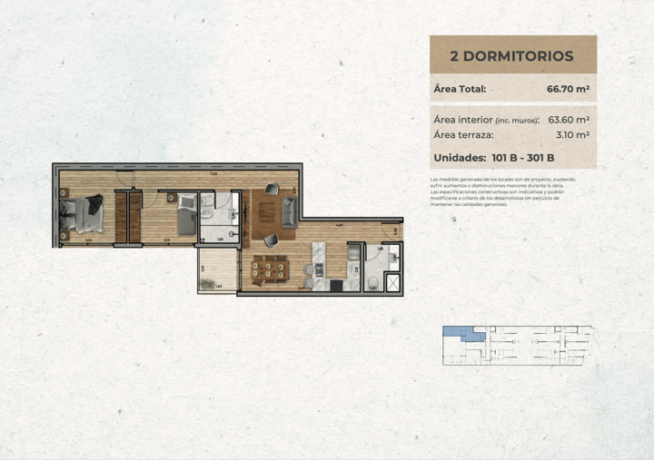 Apartamento de 2 dormitorios en la segunda torre.