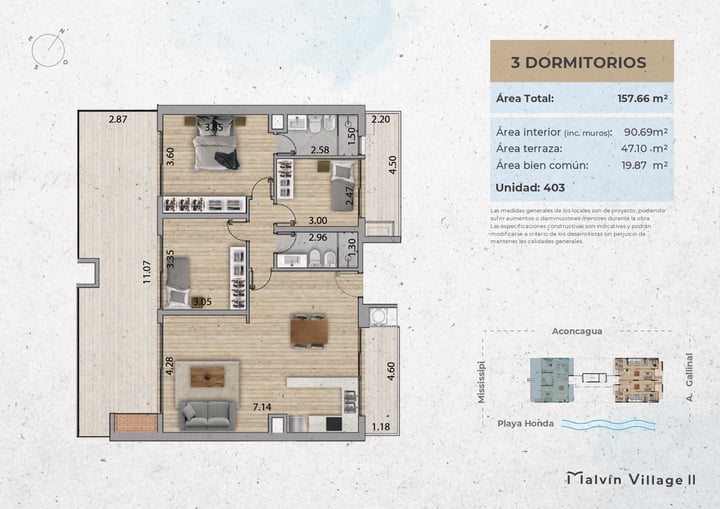 Venta de apartamento de 3 dormitorios en Malvín Village II
