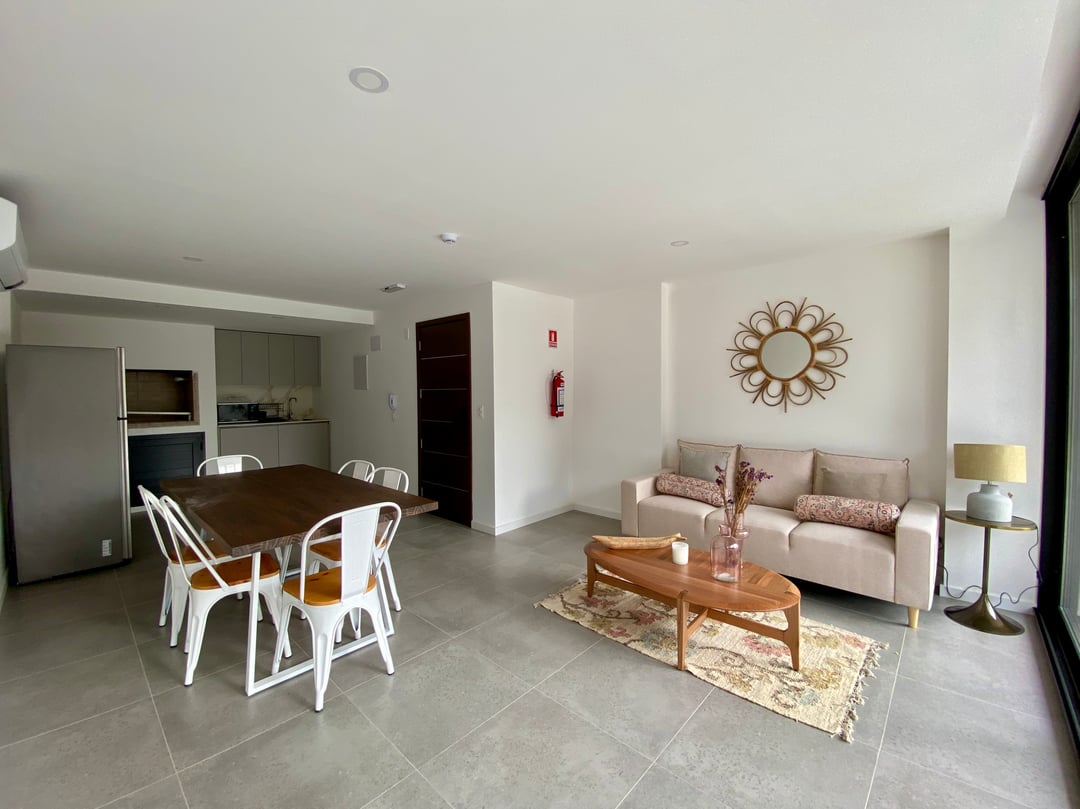 La unidad da hacia atrás, cuenta con amplia vista y tiene mucha luminosidad; está distribuida en 78m² más 16m² de terraza.