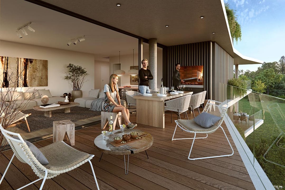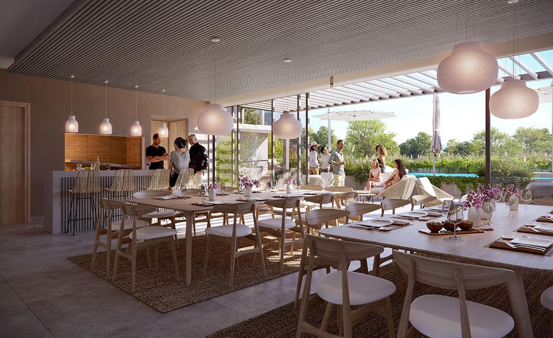 El proyecto consta de dos torres de 4 niveles, con apartamentos de 2 y 3 dormitorios y amenities de primer nivel: piscina con solárium, un SUM con parrillero y espacio in-out, área de wellness, cowork, gimnasio completamente equipado, sala de juegos y seguridad.