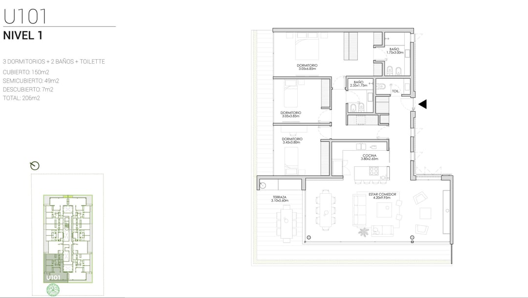 VERT CARRASCO ofrece apartamentos de 3 y 4 dormitorios, diseñados para adaptarse a diversas necesidades familiares y estilos de vida. Los apartamentos de planta baja cuentan con jardines privados, proporcionando un espacio exterior exclusivo. Las unidades en los pisos superiores disponen de amplios balcones con parrilleros, ideales para disfrutar al aire libre, mientras que los apartamentos del último nivel son tipo dúplex, con acceso a una terraza de uso exclusivo que ofrece vistas inigualables y un espacio adicional para el esparcimiento. Cada unidad cuenta con 2 garajes en el subsuelo, brindando mayor comodidad a los residentes.