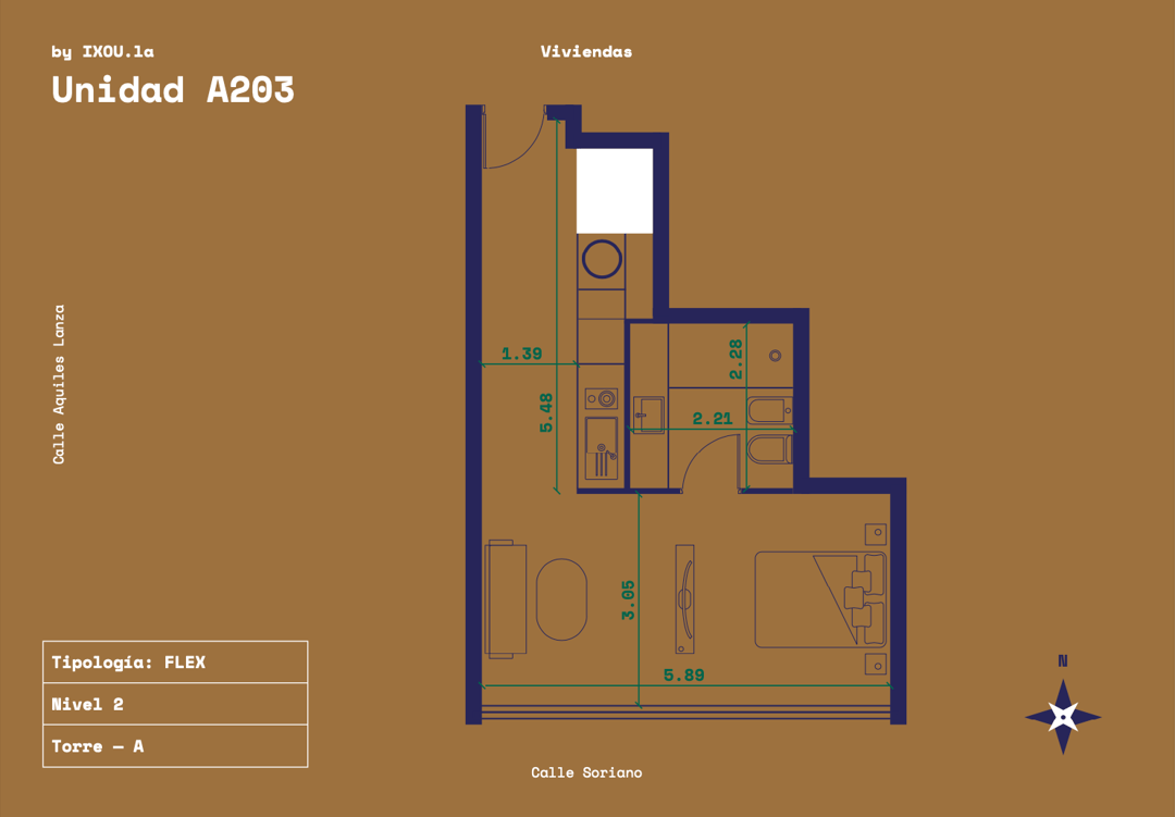 Segundo piso al frente, sobre la calle Soriano. Comodo apartamento, con kitchenette y un baño completo.