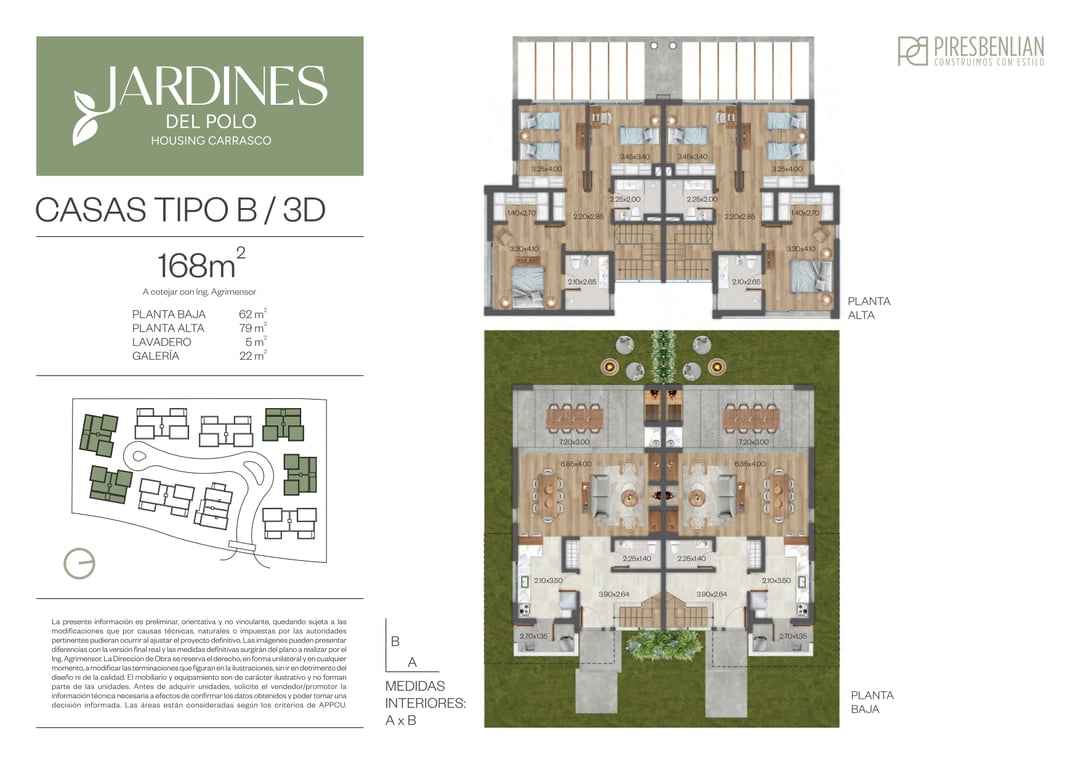 Planta alta: 3 dormitorios con placares, el principal en suite y con vestidor, otro baño completo.