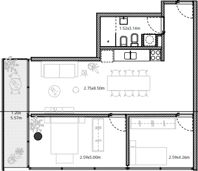 2 dormitorios, el principal al frente y el segundo dormitorio al contrafrente.