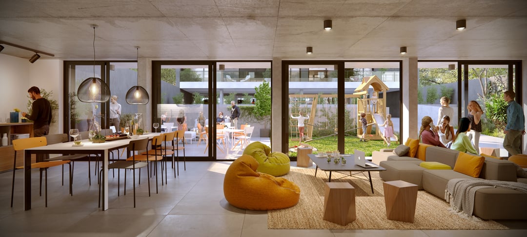 Rodeado por clubes deportivos, universidades, plazas y parques, hospitales y comercios. Un edificio de imagen moderna y dinámica. Proyectado en 3 bloques, conformado por 88 apartamentos con terrazas, patios y áreas comunes para vivir y trabajar.