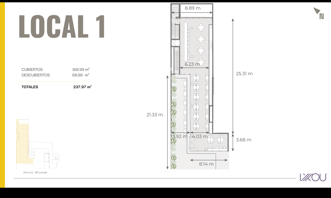 Local comercial en dos niveles, con 290m² internos y 78m² exteriores.