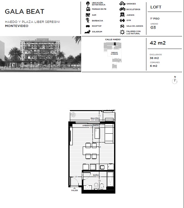 Amenities: Parque de 700m2, sum con cocina, equipamiento completo y sanitarios, gimnasio, cowork, barbacoa, juegos para niños y sala de juegos, open gym, solarium y duchas y rooftop.