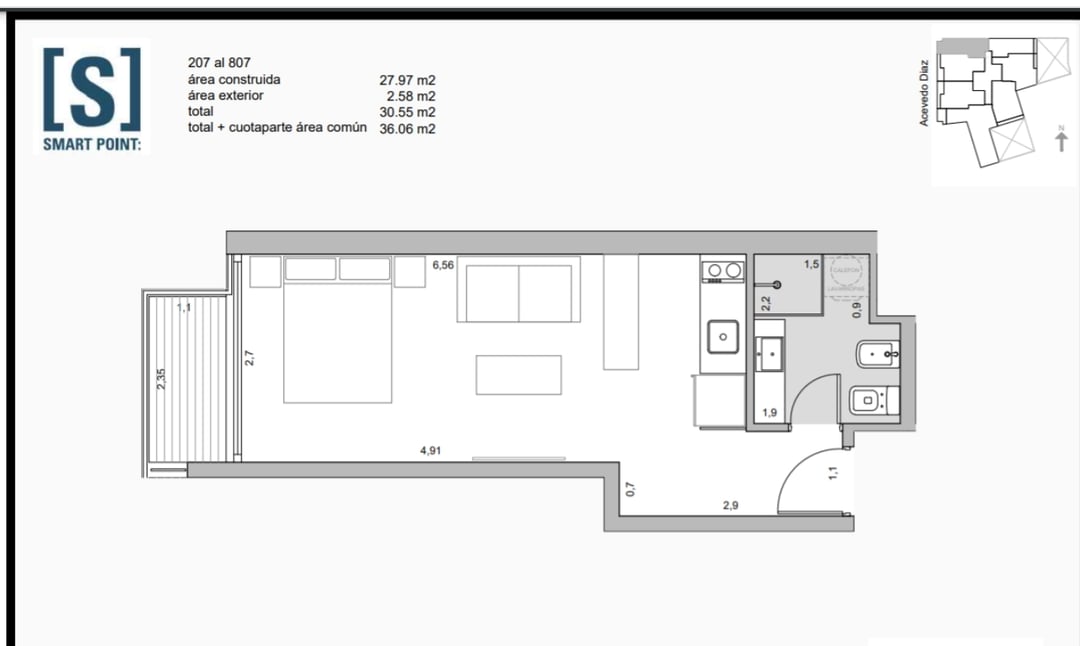 Venta de monoambiente con renta en Smart Point, Tres Cruces.