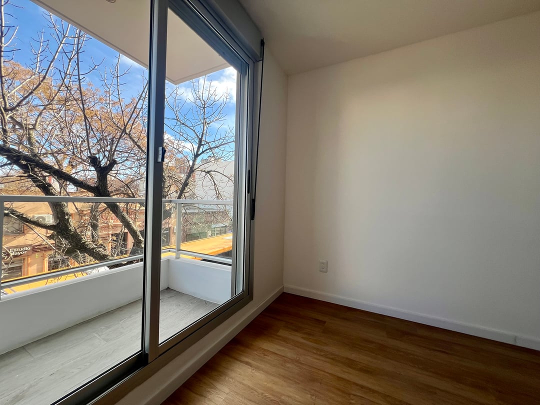 El apartamento tiene un disfrutable balcón que le da amplitud, puerta ventana con persiana.