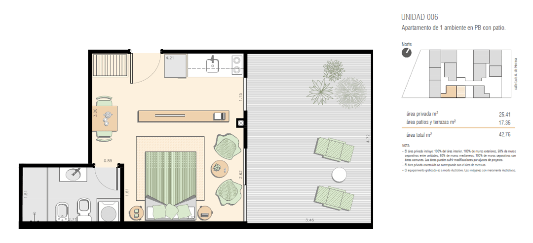 La unidad se encuentra en planta piso al contrafrente y ofrece una planta funcional, con buena iluminación y distribución eficiente de los espacios.