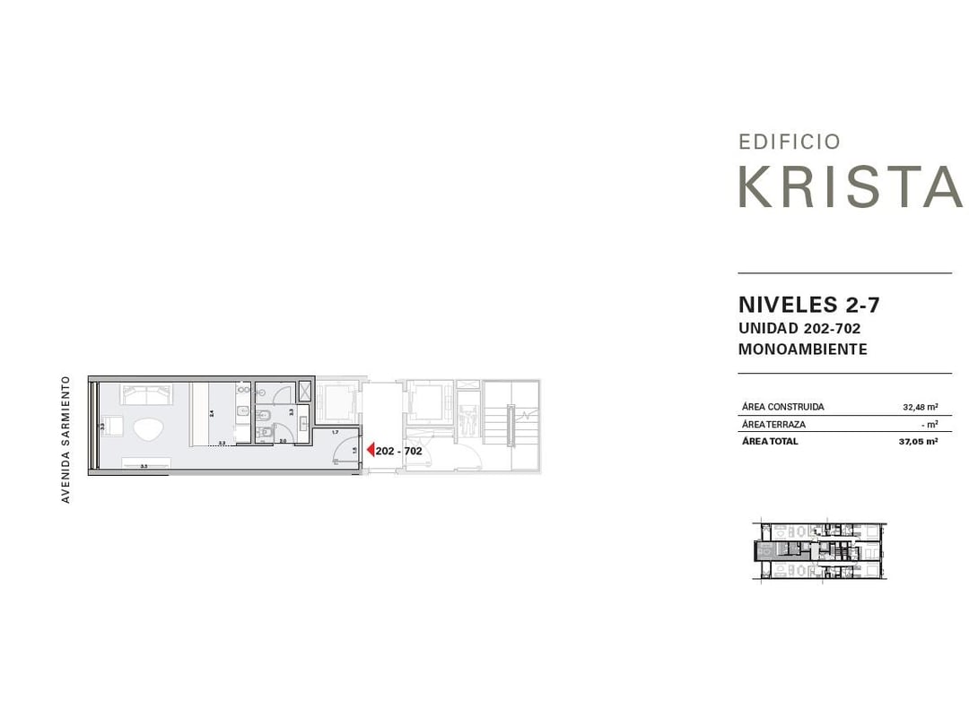 La undiad se ubica en el segundo piso al frente con orientación Norte. Funcional monoambiente.