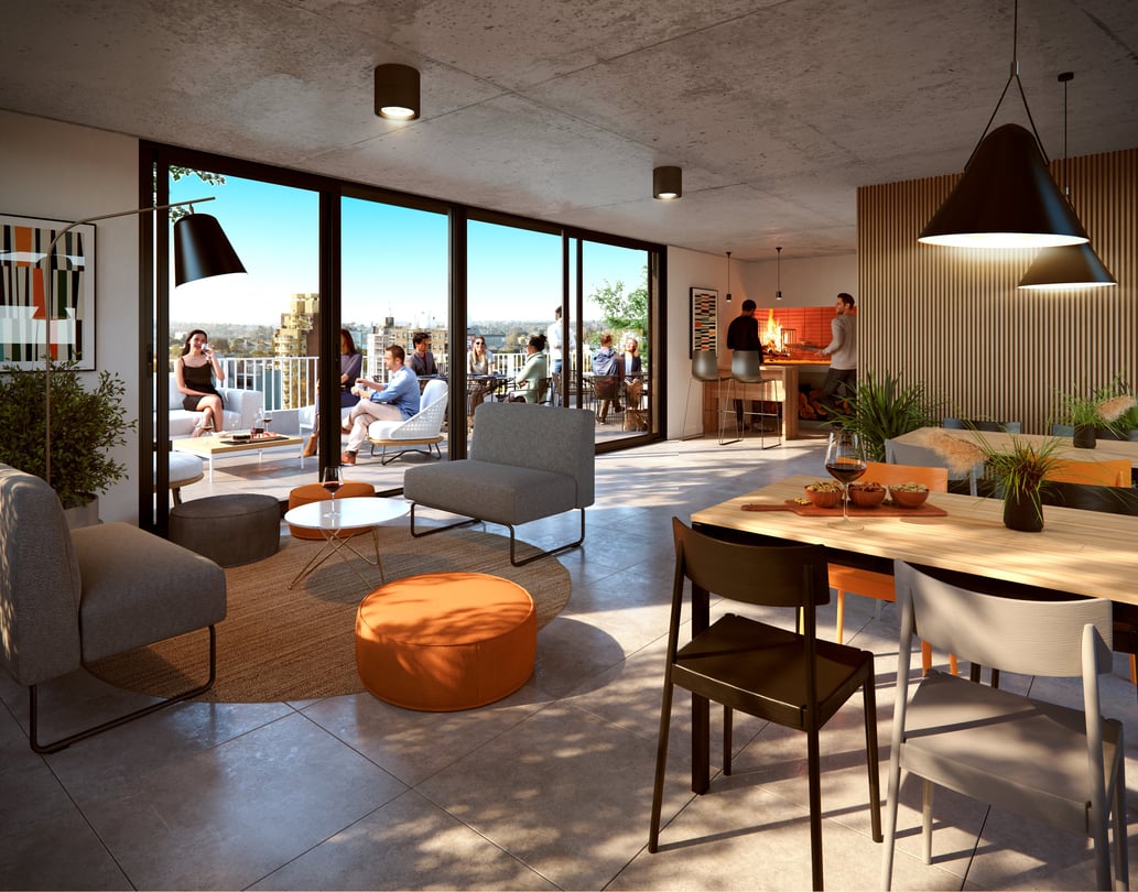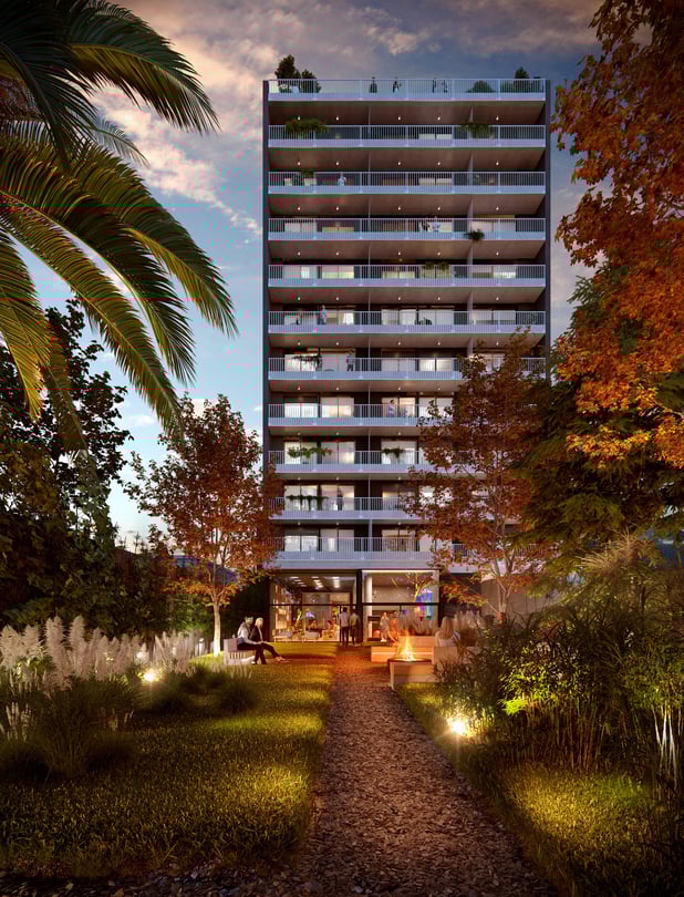 Contará con amenities de calidad como: piscina, espacio relax, gimnasio in -out equipado, cancha de futbol, cancha básket, barbacoa equipada, terraza 360° con living de exterior, espacio cowork, sala de lectura, laundry de lavado y secado con app, racks de soporte para bicis, cargadores para autos eléctricos y ventanas doble vidrio hermético.