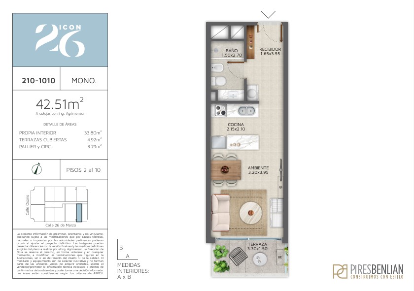 Venta de monoambiente en ICON 26, ubicado en una de las zonas mas deseables de Pocitos - 26 de Marzo y José L. Osorio.