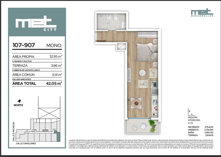 Venta de Monoambiente en Met City, Centro, ubicado en Canelones, entre Héctor Gutiérrez Ruiz y Zelmar Michelini, en una zona hiperconectada, donde te facilita la logística cotidiana, con todos los servicios a mano y a su vez muy cerca del escape de la Rambla.