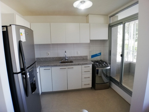 Monoambiente a nuevo, piso de porcelanato, baño cómodo, cocina con bajo mesada y mueble aéreo que optimizan el espacio.
