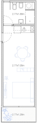 Monoambiente al frente con terraza.